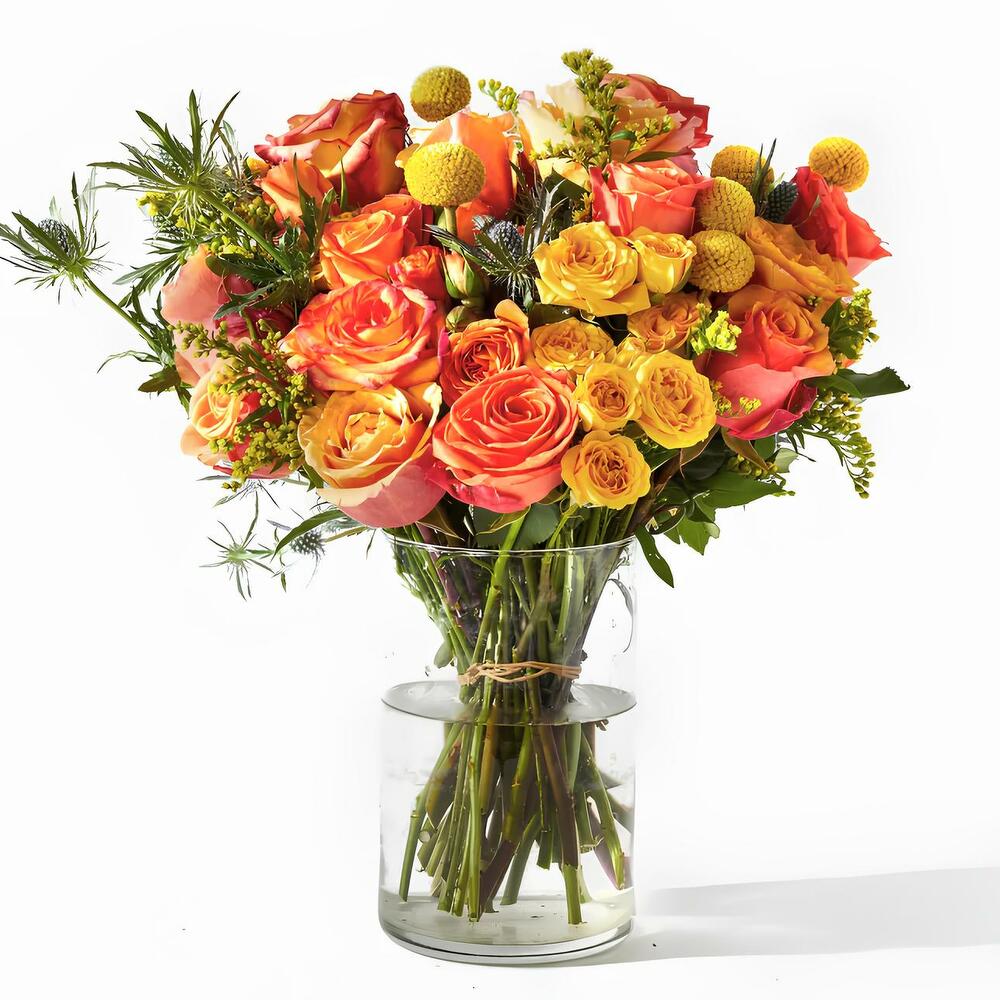 An explosion of joy and color that lights up any space. This bouquet, full of warm energy, is designed to convey happiness, enthusiasm and gratitude. Ideal for birthdays, thank-yous, or simply to brighten the day of someone special. 📝 Note: The vase is not included in the product.