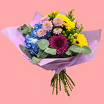 Solidago - 2 pcs hydrangea - 1 pcs Gerbera - 3 pcs anastasia - 2 pcs margarita - 3 pcs green hypericum - 2 pcs