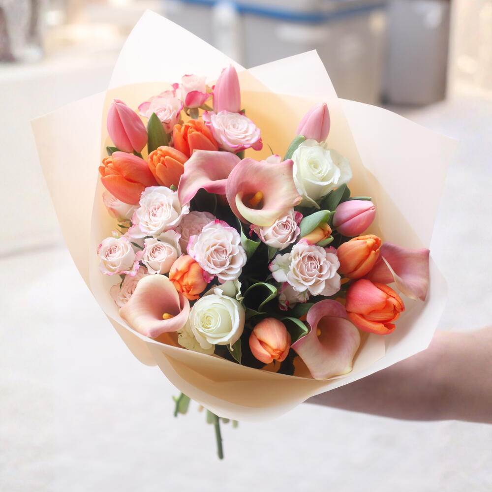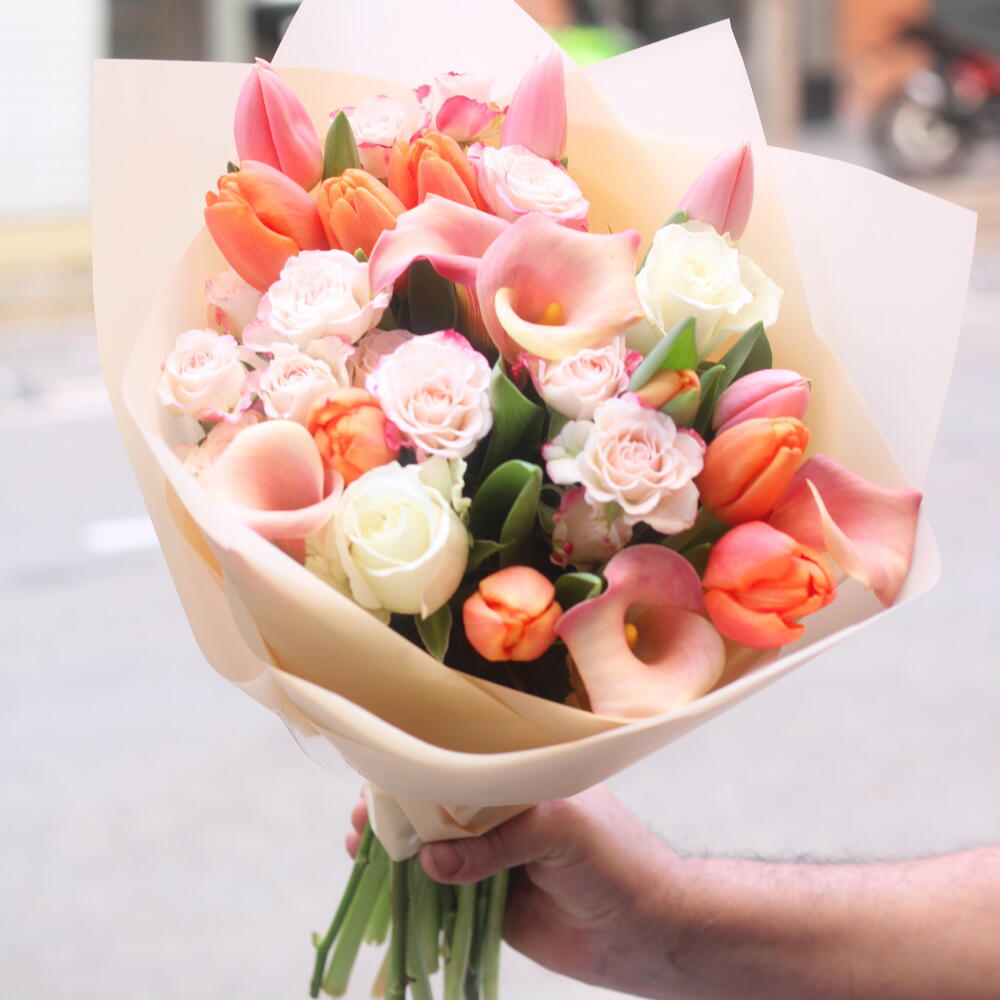 tulips - 10 pcs rosas ramificadas - 3 pcs rosa blanca - 2 pcs calla - 5 pcs