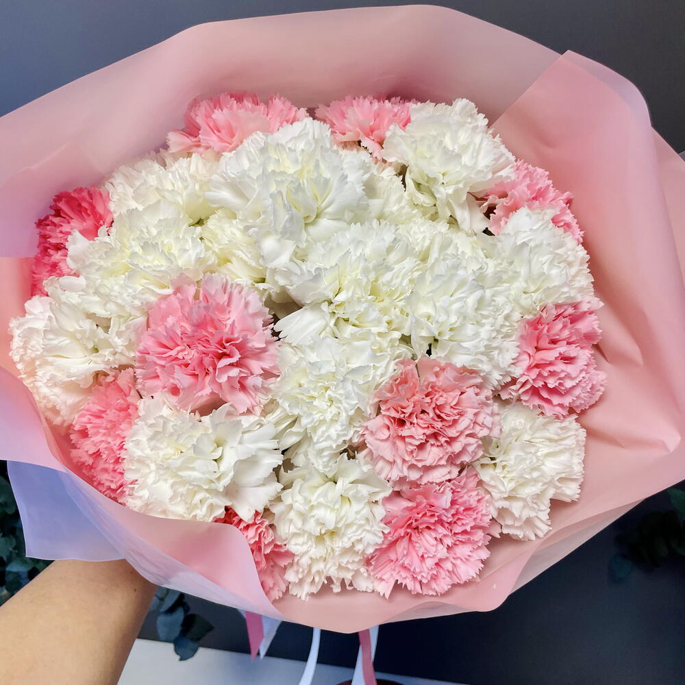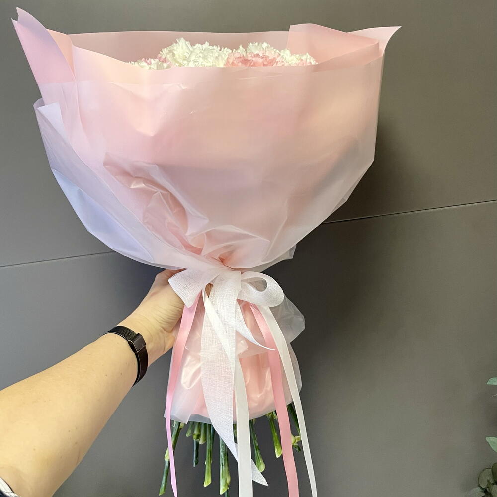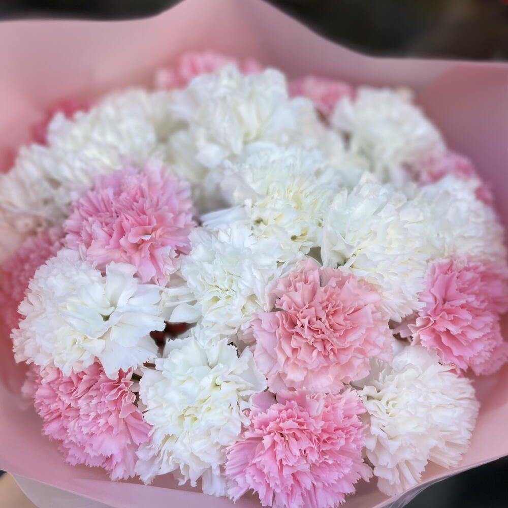 pink carnation - 12 pcs clavel blanco - 13 pcs papel coreano - 5 pcs cinta decorativa - 3 pcs