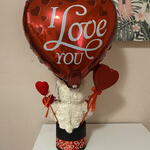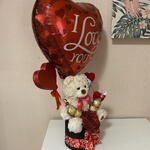 Ferrero rocher - 4 pcs plush teddy bear - 1 pcs decorative box - 1 pcs eternal rose - 1 pcs i love you balloon - 1 pcs handmade heart - 1 pcs decor heart - 2 pcs