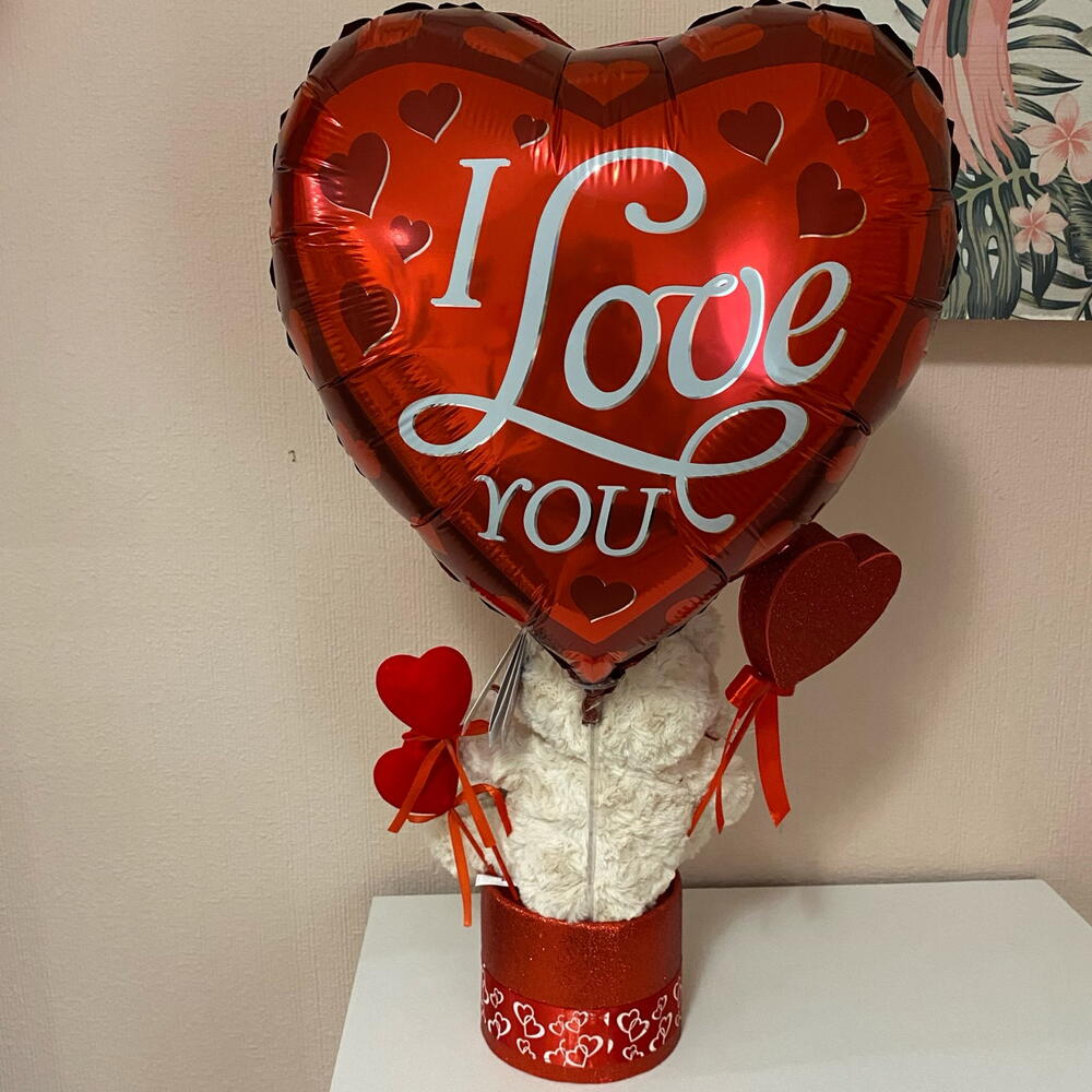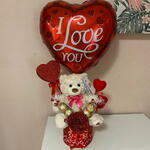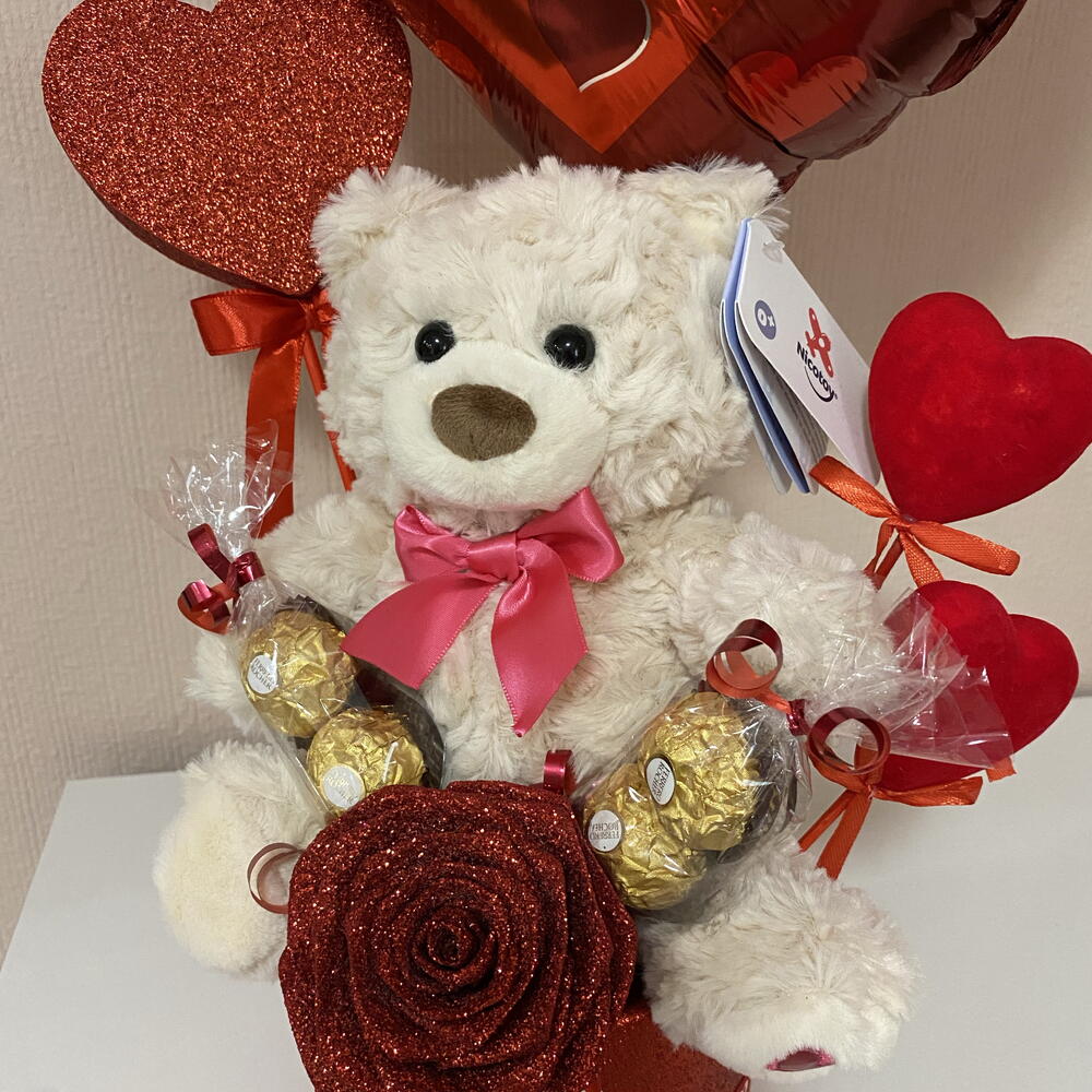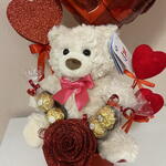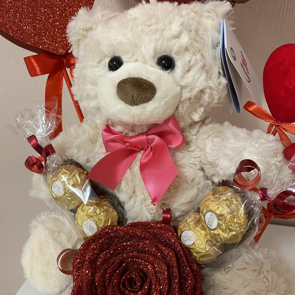 Ferrero rocher - 4 pcs plush teddy bear - 1 pcs decorative box - 1 pcs eternal rose - 1 pcs handmade heart - 1 pcs i love you ballon - 1 pcs decor heart - 2 pcs
