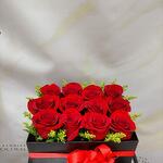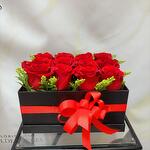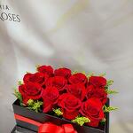 This beautiful flower box is the perfect representation of love and admiration. Composed of 12 red roses, it symbolizes deep and true love. It is complemented by 1 yellow solidago, which adds a touch of warmth and happiness. The decorative box and ribbon give it an elegant and sophisticated finish, making this floral arrangement the perfect gift for any occasion.