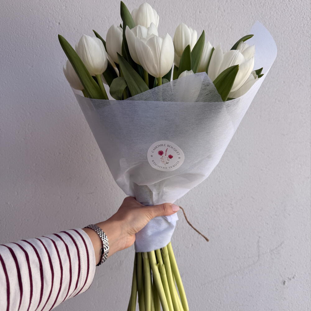 An elegant and timeless bouquet composed of 20 fresh white tulips, carefully selected to convey purity, serenity and harmony. White tulips symbolize sincerity, respect and new beginnings, making this bouquet a perfect choice to express genuine feelings with delicacy. Its simple and sophisticated beauty brings light and calm to any space. Ideal for special occasions, gestures of affection or to send a message of peace and elegance with a detail full of meaning. 🤍🌷