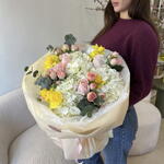Eucalyptus - 3 pcs Spray rose - 4 pcs hydrangea - 6 pcs pink - 4 pcs papel - 6 pcs narcissus - 5 pcs