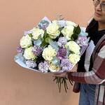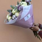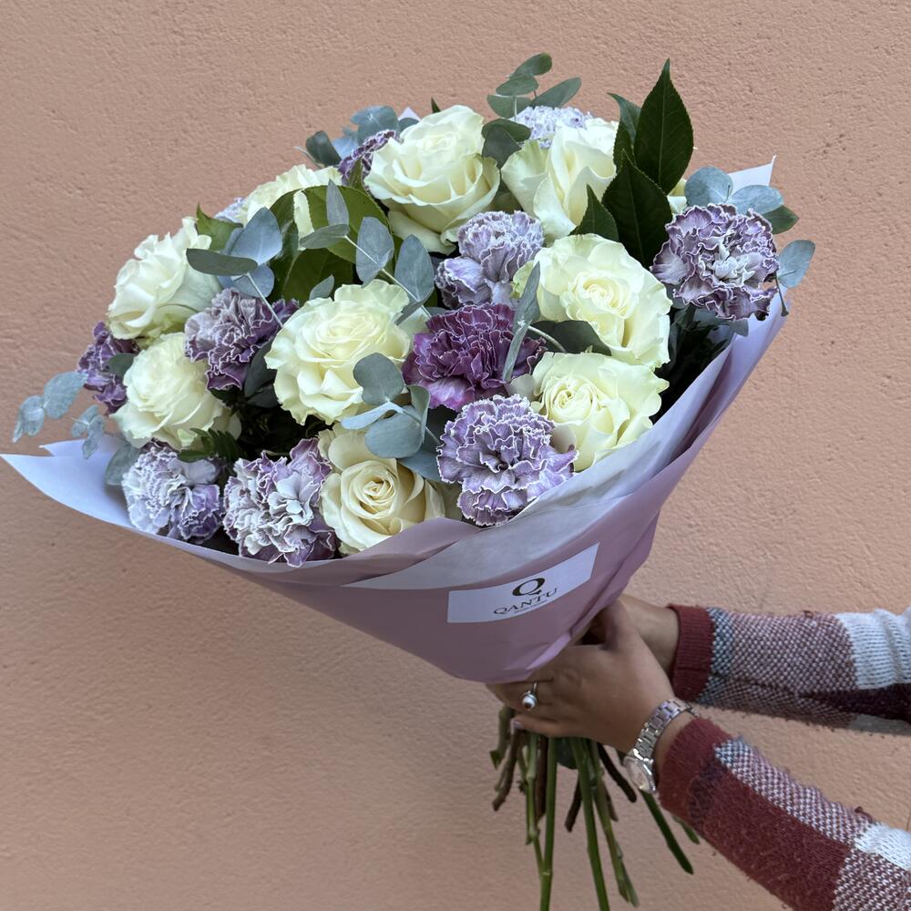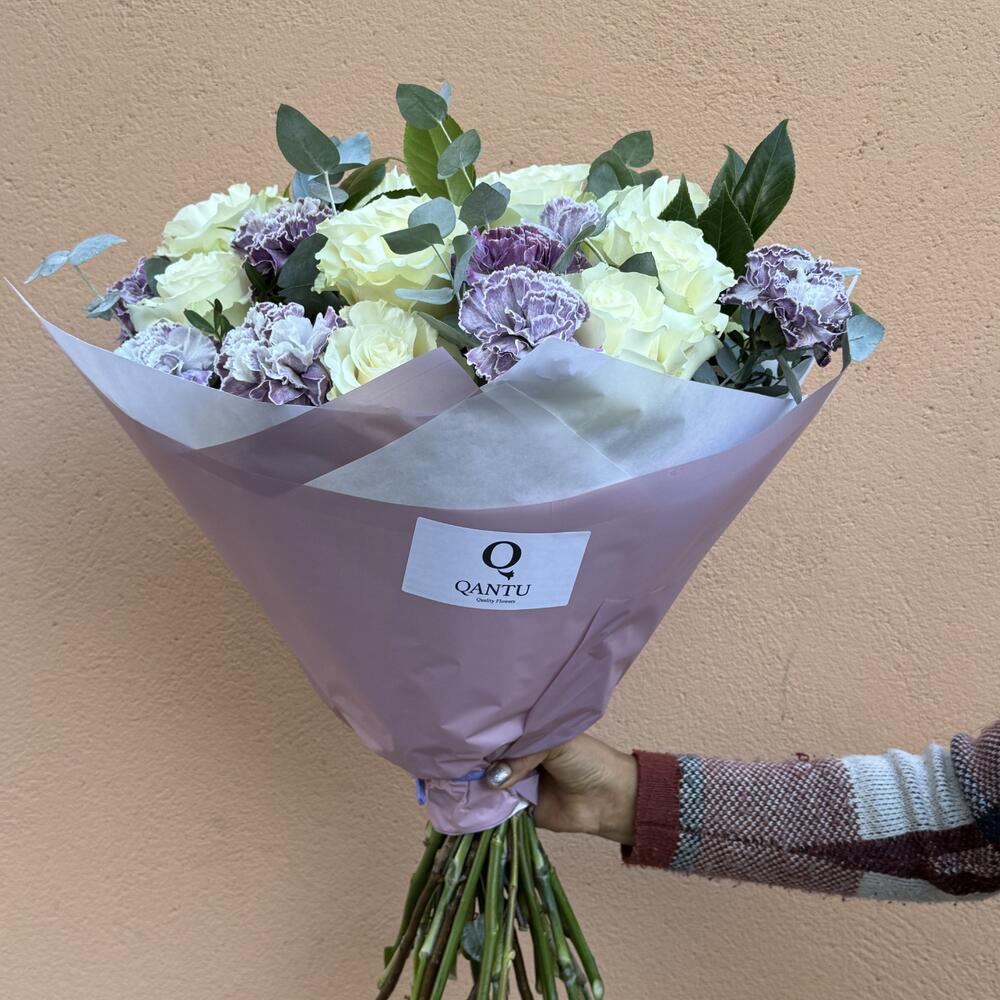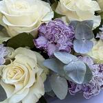 eucalyptus - 8 pcs rosas blancas - 11 pcs lavender carnations - 15 pcs