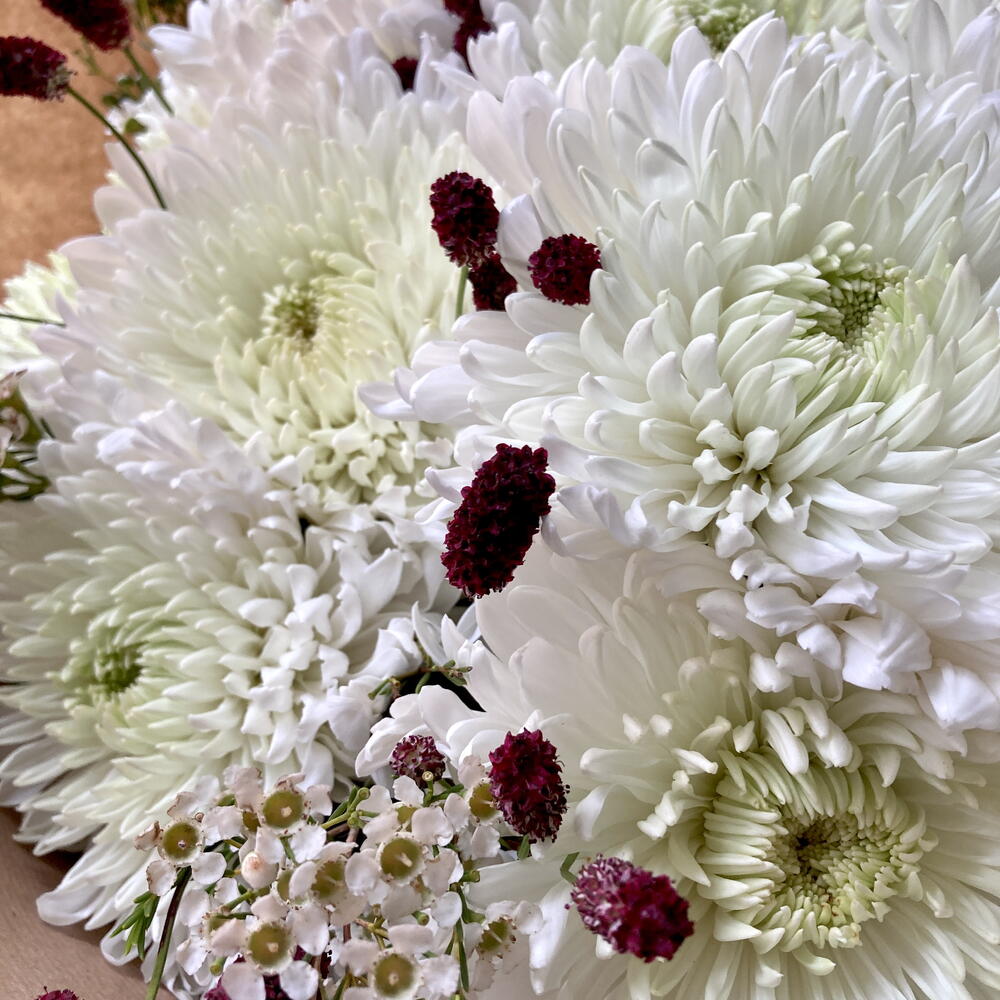 flor de cera - 5 pcs magnum chrysanthemums - 10 pcs burnet - 10 pcs