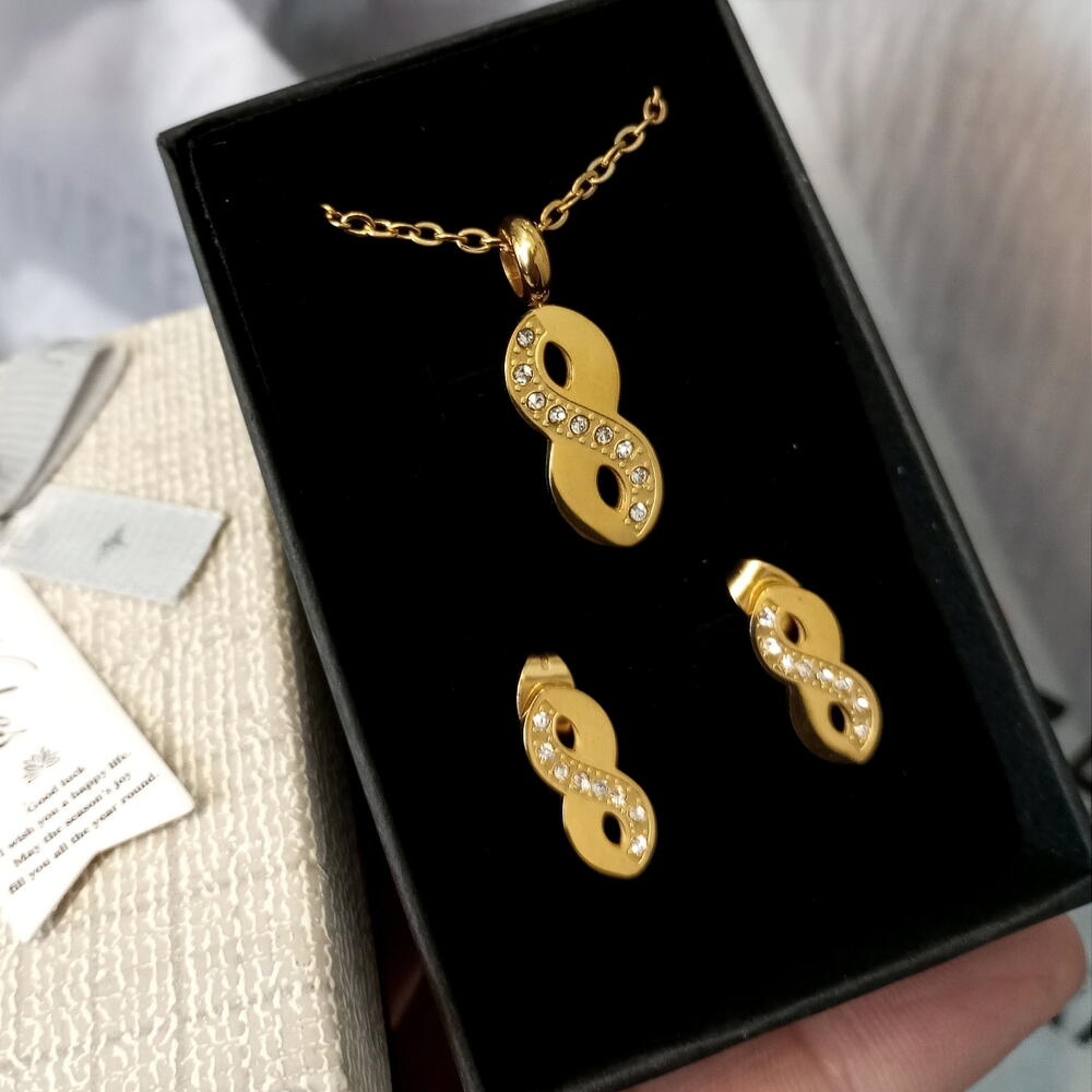 Bellísimo Conjuntos de Collar y Pendientes del Símbolo del INFINITO, que además de su significado de lo eterno y sin final, el 8 es un número con un significado muy poderoso, de éxito y abundancia. Y Viene con Grabado Incluido! Del otro lado se puede personalizar con letras, símbolos, nombres, lo que tú quieras! Debes indicarlo en Comentarios, o Notas del Pedido. También nos puedes enviar un mensaje! Estaremos encantados y disposición siempre.
