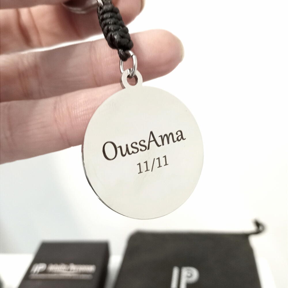 Personalized Stainless Steel Keychain, elegantly combined with a Black Cord. Includes engraving on both sides! With whatever you want! Photos, symbol, tattoo, fingerprint, names, phrases, etc! You choose what you want us to give it the unique and personal touch! Any clarification about the engraving or whatever you want, you can indicate it to us in the comments or Order Notes. You can also send us a message!