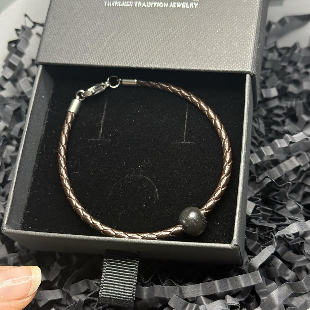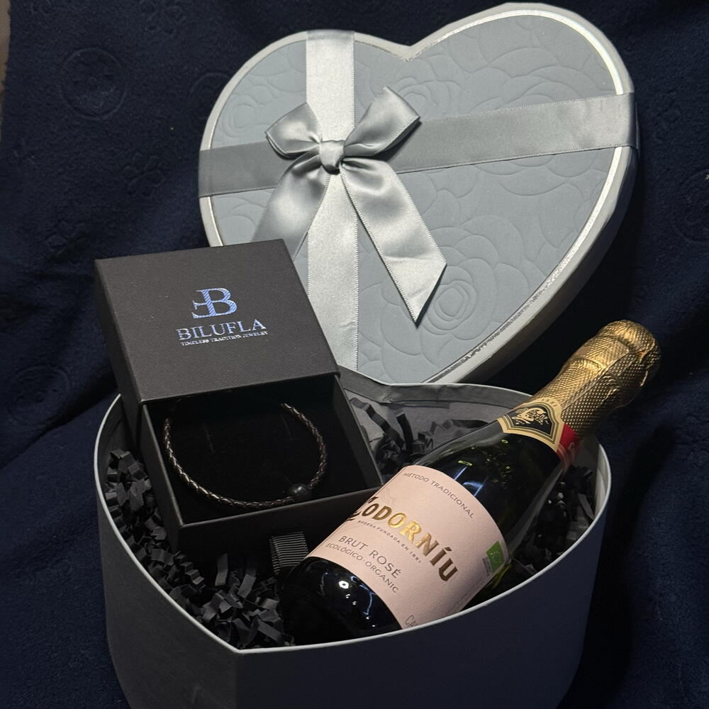 💙 A special touch to celebrate Father's Day. This pack includes a handmade bracelet, a symbol of strength, guidance and protection. A piece meant to remind you every day of the value of those who teach us, support us and accompany us every step of the way. The bracelet is made of leather and stainless steel, and incorporates a central piece of barro preto, a Portuguese artisanal technique considered cultural heritage, which brings authenticity, history and character to each design. Includes: 🖤 Handmade leather and stainless steel bracelet with barro preto 🥂 Bottle for toasting A meaningful gift, elegant and ready to surprise. Perfect for thanking, celebrating and toasting those who have been a pillar in our lives.