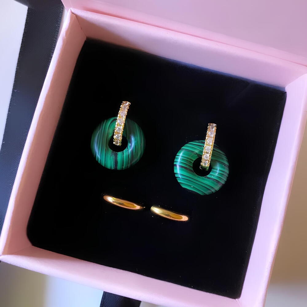 100% stainless steel Cubic zirconia Malachite