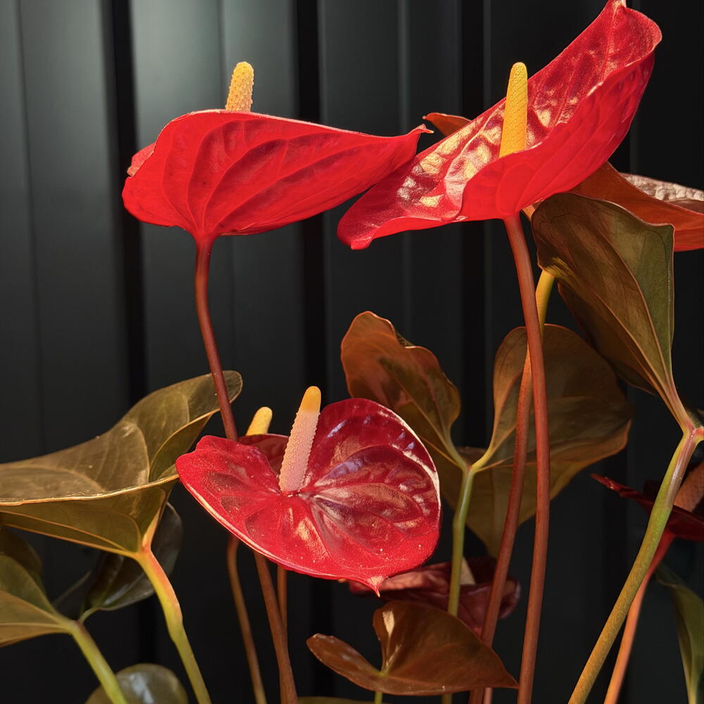 Exotic and elegant plant, known for its bright, eye-catching heart-shaped flowers. Adds a sophisticated, modern touch to any space. Ideal for interiors, perfect for decorating and creating a warm, natural atmosphere.
