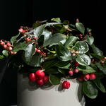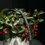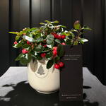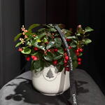 Decorative Gaultheria plant with bright red berries in a ceramic pot with a winter design. Ideal for gifting and for adding a cozy touch to the home. a.149