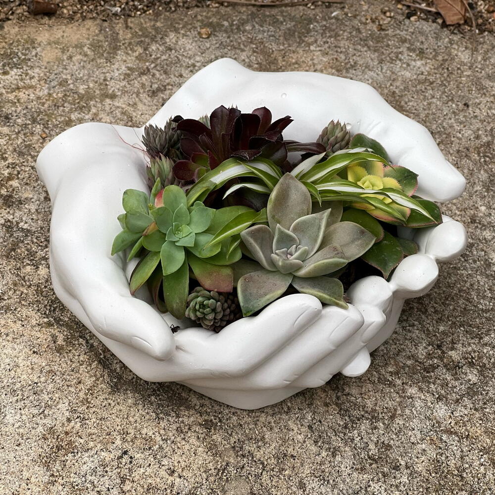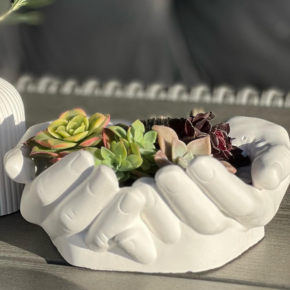 Las manos están hechas de yeso y tratadas con barniz hidrófugo. Se puede utilizar para llaves, monedas, dulces, joyas, etc. Un gran regalo que durará mucho tiempo.