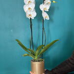 Elegant natural white orchid presented in a decorative pot, ideal for decorating interiors or gifting on special occasions. Its delicate flowers add a sophisticated, modern and natural touch to the home or office. Easy-care, long-lasting plant.
