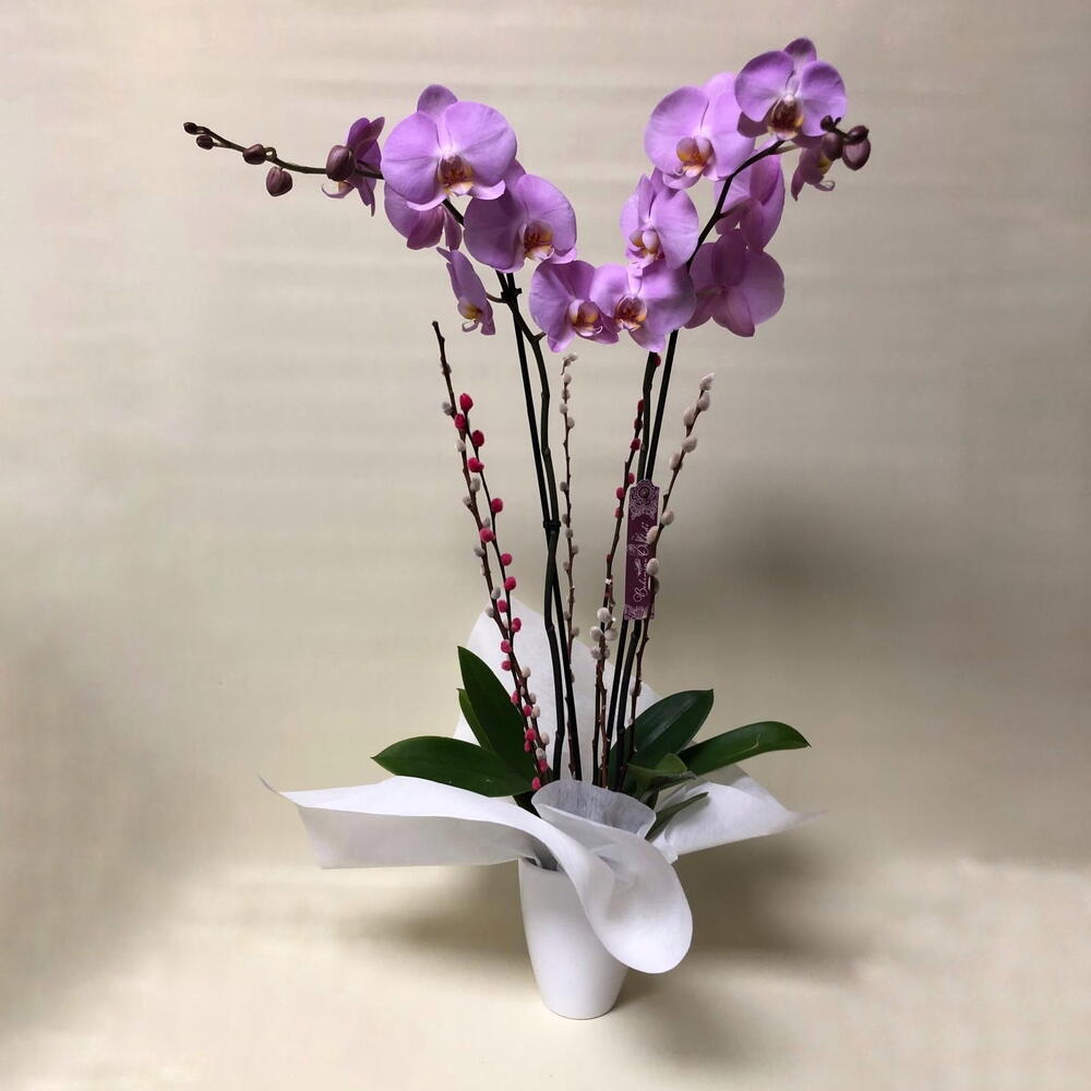 Mauve orchid plant, ideal for decorating any place. We also have it in white. The plant does not include a ceramic pot.