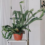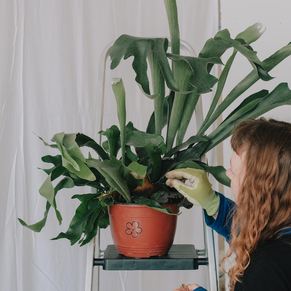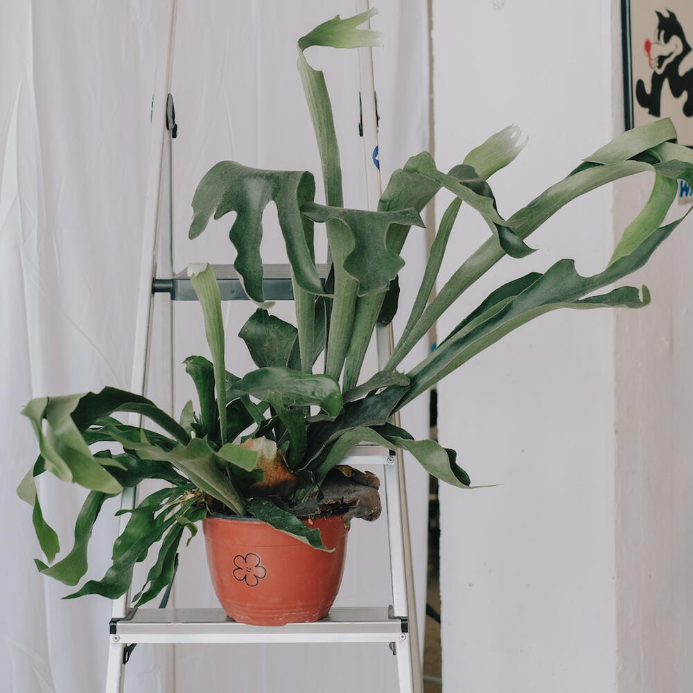 height: 50-70 cm pot diameter: 25-30cm GOOD TO KNOW Unique Leaf Shape: Resembles deer antlers; has two types of leaves—shield (protective) and fertile (reproductive). Epiphytic Plant: Grows on trees without harming them, using them for support. Natural Reservoirs: Shield leaves collect organic debris, providing nutrients. Ancient Fern: Existed for over 100 million years, predating flowering plants. Long Lifespan: Can live 20+ years with proper care. Spore Reproduction: Propagates through spores, not seeds. Low Maintenance: Surprisingly easy to care for indoors. PLANT CARE Light: Bright, indirect light; avoid direct sunlight. Watering: Soak by submerging in water for 15–20 minutes every 1–2 weeks. Let it dry slightly between waterings. Humidity: Prefers high humidity (60–70%) Fertilizing: Feed once a month during spring and summer with diluted orchid or fern fertilizer. Repotting: Every 2–3 years; best grown on wooden boards or in hanging baskets with moss. Leaf Care: Do not remove brown shield leaves; they protect the plant. Avoid wiping the fuzzy leaves. Pest Control: Watch for spider mites and scale insects; treat if necessary. ✿ all plants are grown in Spain ✿ we carefully choose each plant: inspect the roots and leaves we provide pest treatment