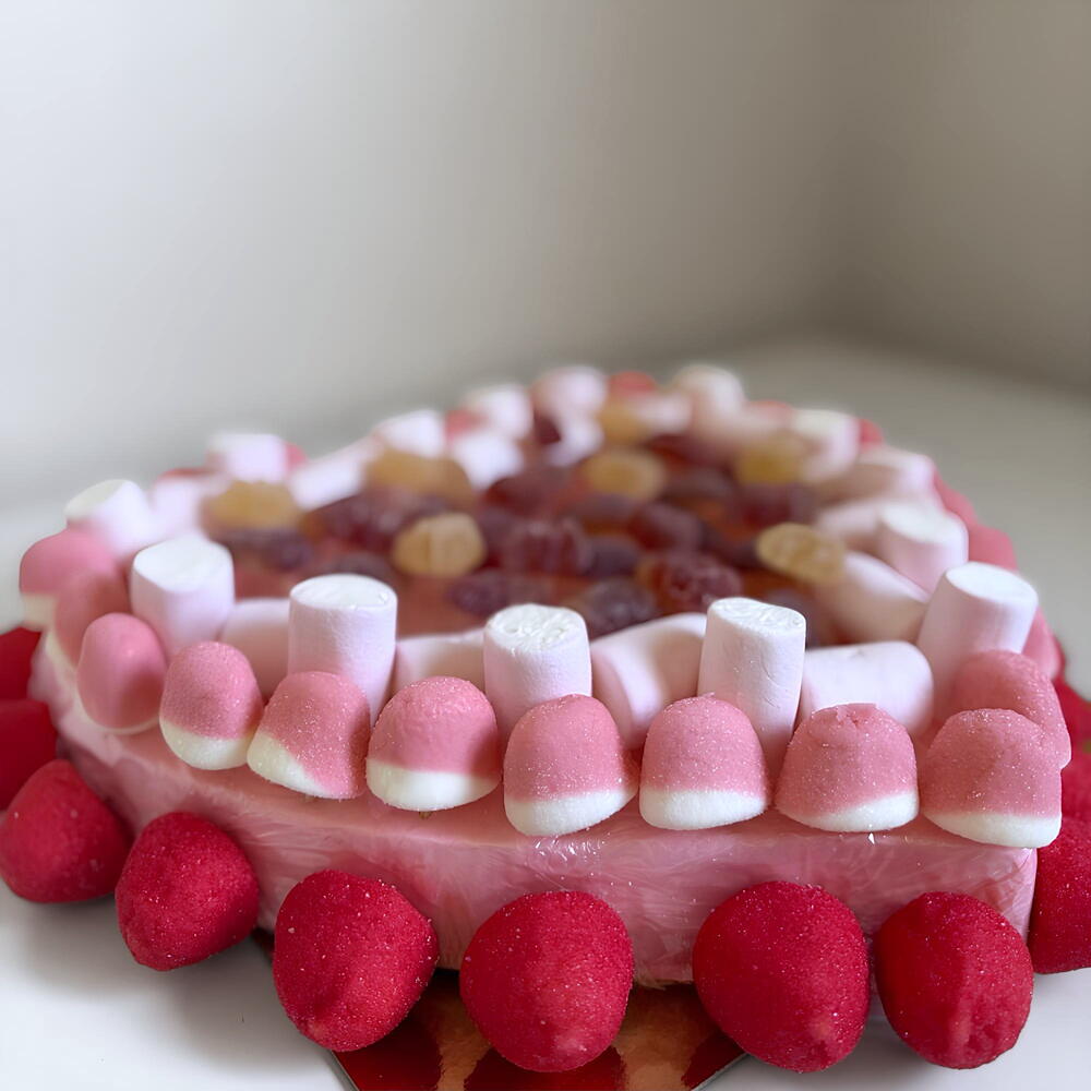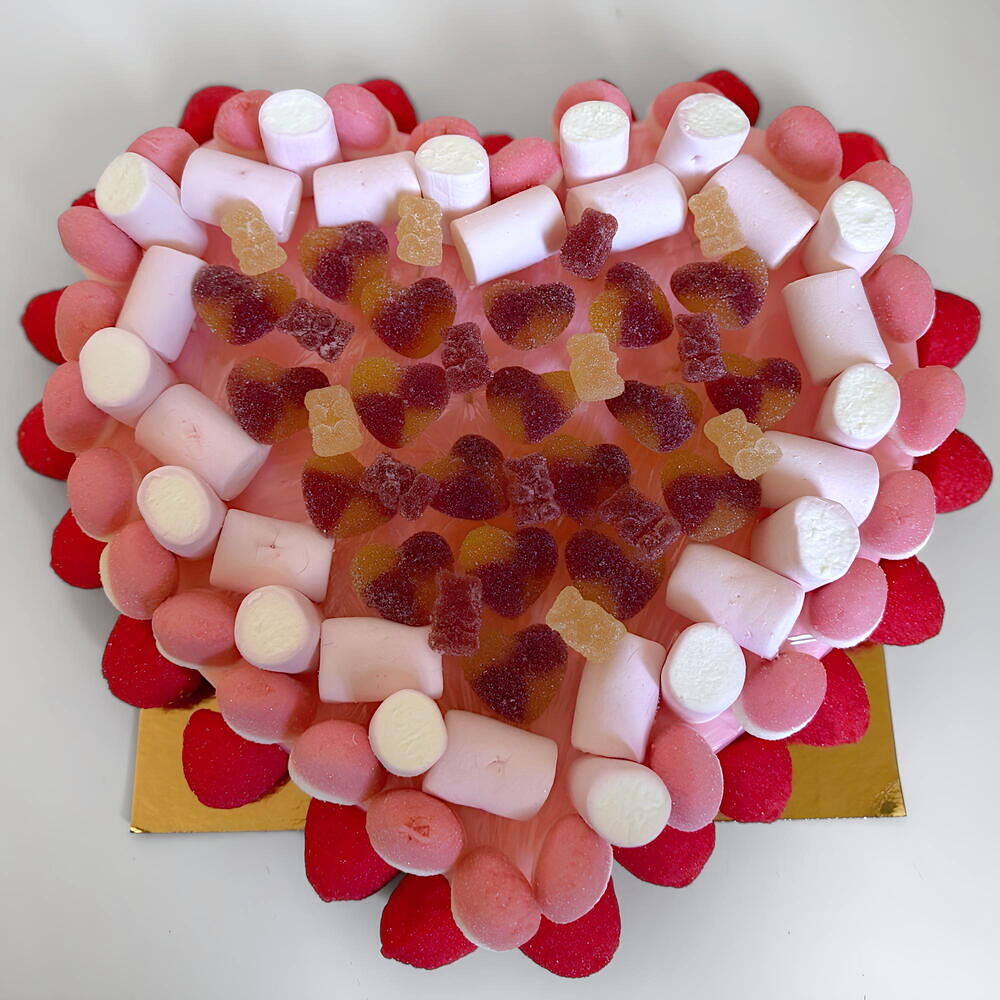 strawberry and vanilla marshmallows - 120 g gelatin hearts with sugar - 80 g gummy bears - 50 g assorted red gummies - 50 g