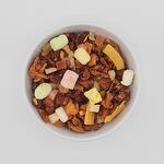 This dessert infusion is a delicious blend with a pronounced nutty and marshmallow flavor. The marshmallows also add a soft, creamy texture. In addition, the coconut pieces give it an exotic, slightly sweet taste that pairs perfectly with the fruity aromas. And the little bits of vanilla provide a delicate, aromatic finishing touch. This combination is perfect to enjoy on a quiet evening or after dinner as a light, healthy dessert. Ingredients: apple pieces (apple, acidulant: citric acid), candied pineapple pieces (pineapple, sugar), marshmallows (glucose syrup, sugar, dextrose, water, humectant: sorbitol, gelatin, flavoring, colorants: cochineal, curcumin, copper complexes of chlorophyllins)(10%), flavoring, coconut chips (coconut, sugar), crunchy pieces (sugar, hazelnuts), vanilla pieces 10 min 100C 4gr /200ml