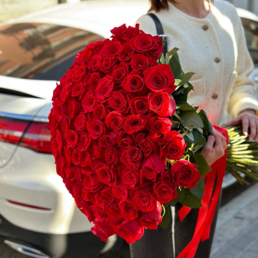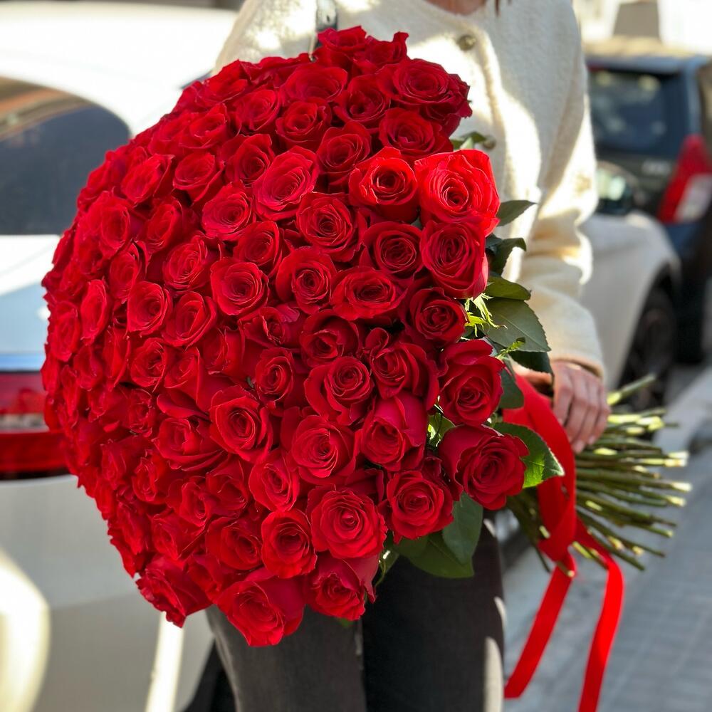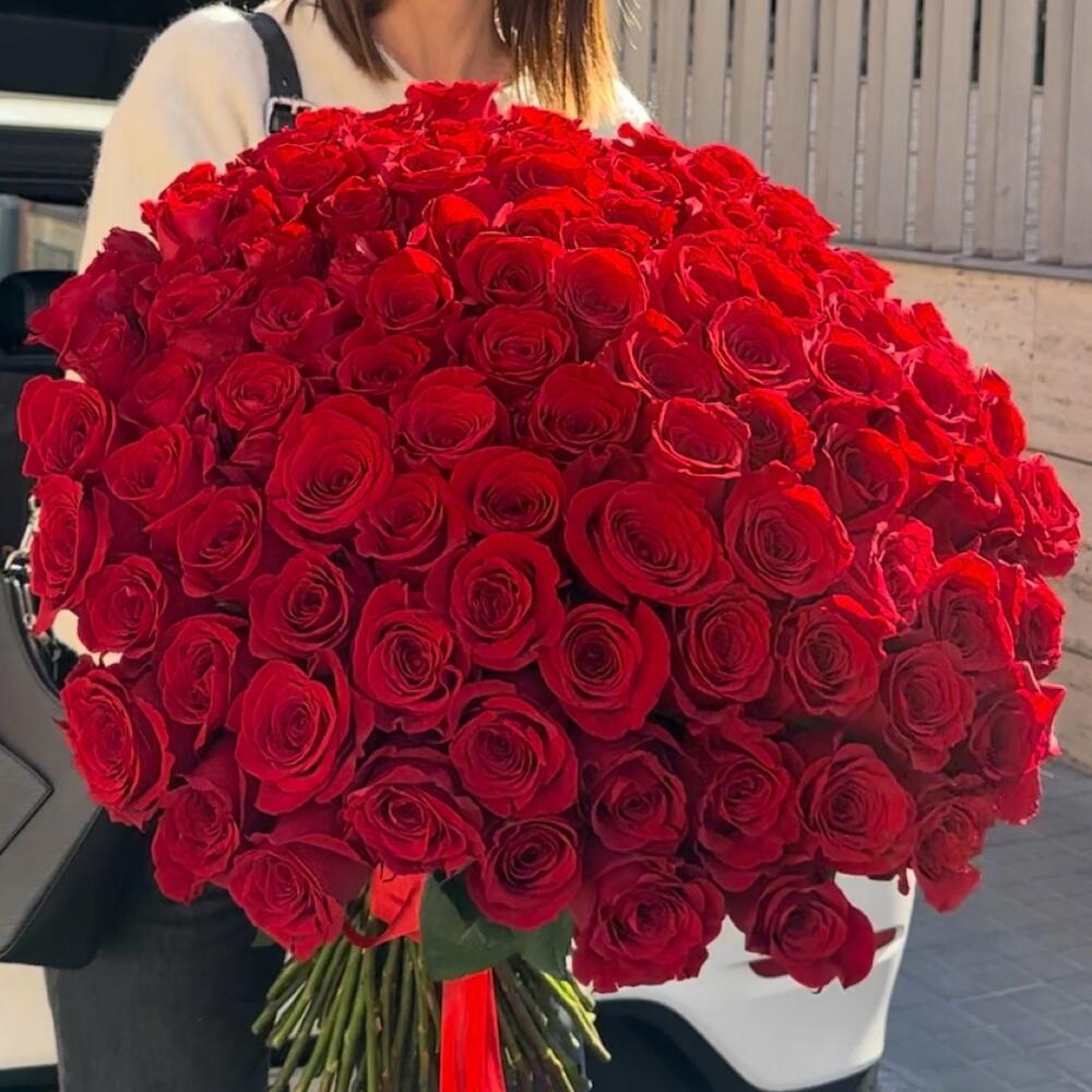 Este majestuoso ramo clásico está compuesto por 101 rosas. Un verdadero testimonio de lo eterno que puede ser el amor y la belleza, cada rosa en el ramo representa un susurro dulce, cada una compartiendo una historia distinta. Este ramo no solo es un regalo, sino un recuerdo inolvidable.