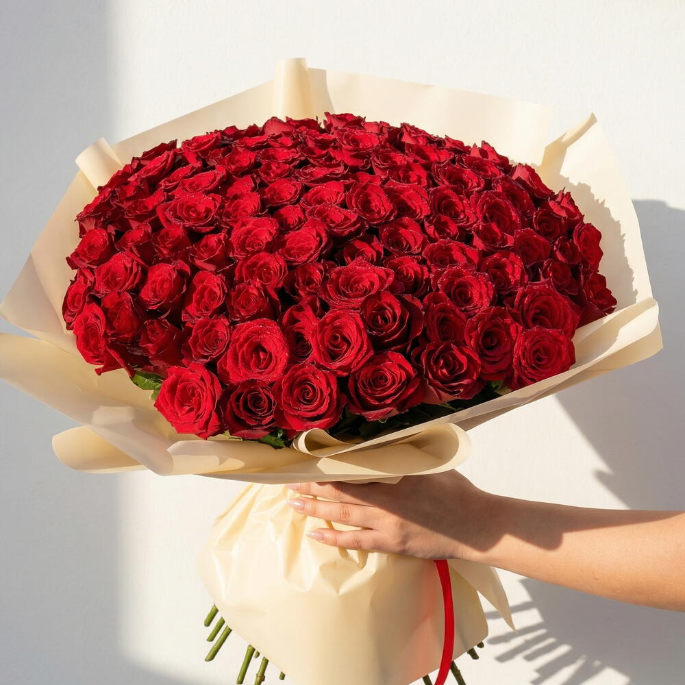 Ramo de 101 Rosas Rojas Premium – Gran Bouquet Romantico de Lujo