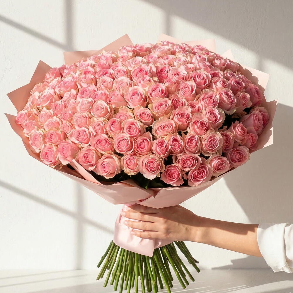 Ramo de 101 rosas rosadas XXL – Bouquet elegante para Dia de la Mujer y regalo para mama