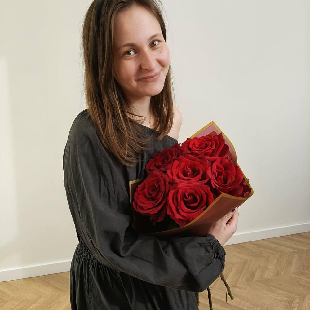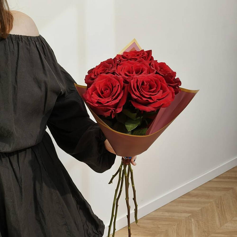 Ramo elegante y sofisticado compuesto por seis rosas rojas premium de gran tamaño, cuidadosamente seleccionadas por su apertura perfecta, pétalos aterciopelados y color rojo intenso. La presentación minimalista con envoltorio moderno realza la belleza natural de cada flor, creando una composición limpia, impactante y muy refinada. Las rosas rojas simbolizan amor profundo, pasión y admiración, convirtiendo este ramo en una elección ideal para sorprender en aniversarios, declaraciones románticas, San Valentín o cualquier ocasión especial donde se desee transmitir sentimientos sinceros. Su diseño compacto pero visualmente potente lo convierte en un ramo exclusivo, elegante y atemporal, perfecto como regalo romántico para mujer, detalle especial de lujo o gesto inolvidable lleno de emoción y estilo.