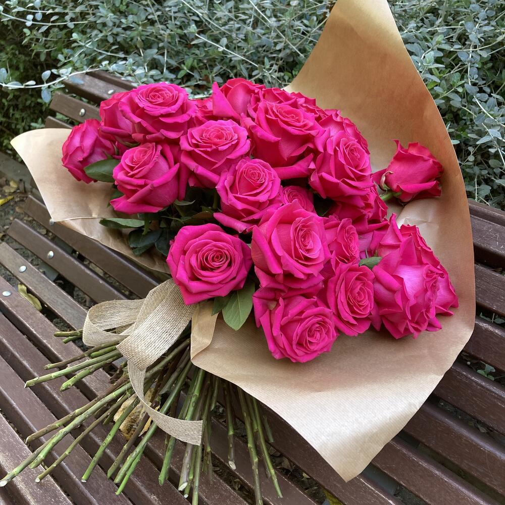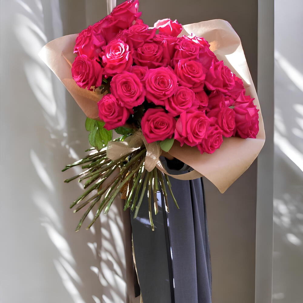 Espectacular ramo de rosas fucsia. No pasará desapercibido.