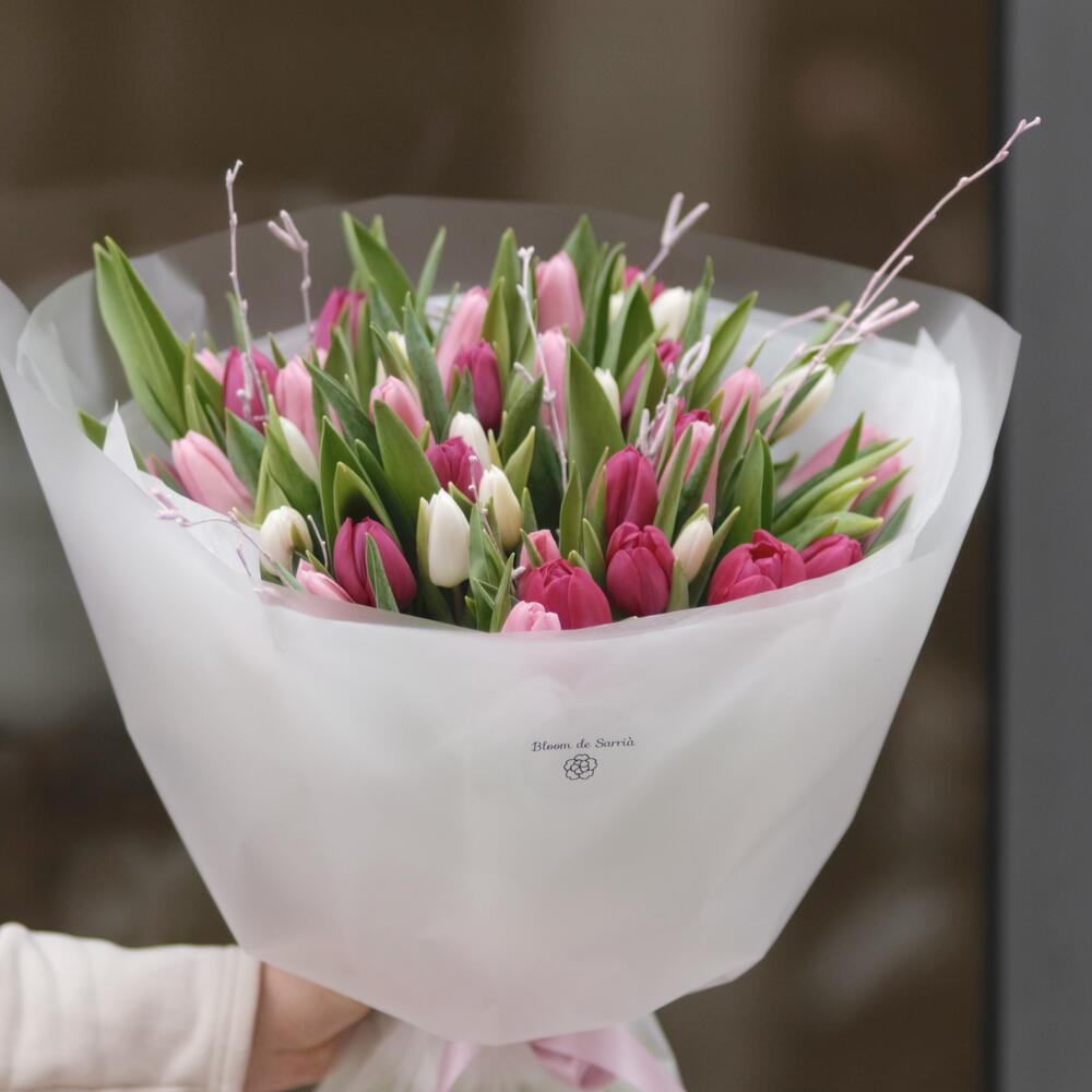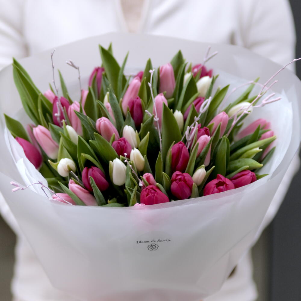 tulipanes blancos - 17 ud. tulipanes rosa claro - 17 ud. tulipanes rosa oscuro - 17 ud.