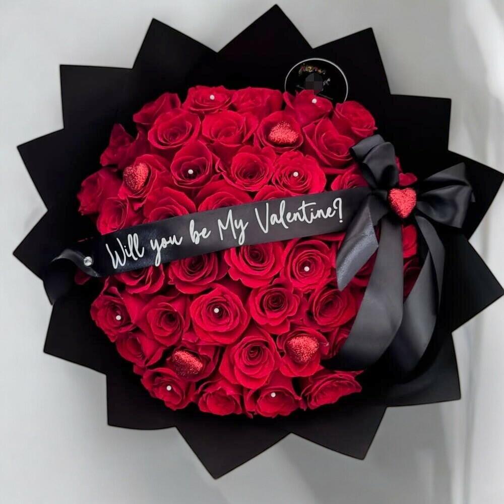 Haz una declaración de amor inolvidable con este ramo de 60 rosas rojas personalizable, ideal para San Valentín o cualquier ocasión especial. Cada rosa ha sido seleccionada por su intensidad de color y frescura, creando un arreglo que transmite pasión, elegancia y romanticismo. El ramo está envuelto en papel coreano negro de alta calidad y adornado con una cinta personalizada con nombre o frase especial, lo que lo convierte en un regalo único y exclusivo. Perfecto para expresar tus sentimientos de una forma sofisticada. Recomendaciones de cuidado: Para preservar la frescura de las rosas, colócalas en un lugar fresco y alejado de la luz solar directa. Si es posible, cambia el agua del florero cada dos días o humedece ligeramente las bases de los tallos. Evita ambientes muy secos o cálidos. Así, este ramo conservará su belleza durante más tiempo, siendo un símbolo duradero de amor verdadero.