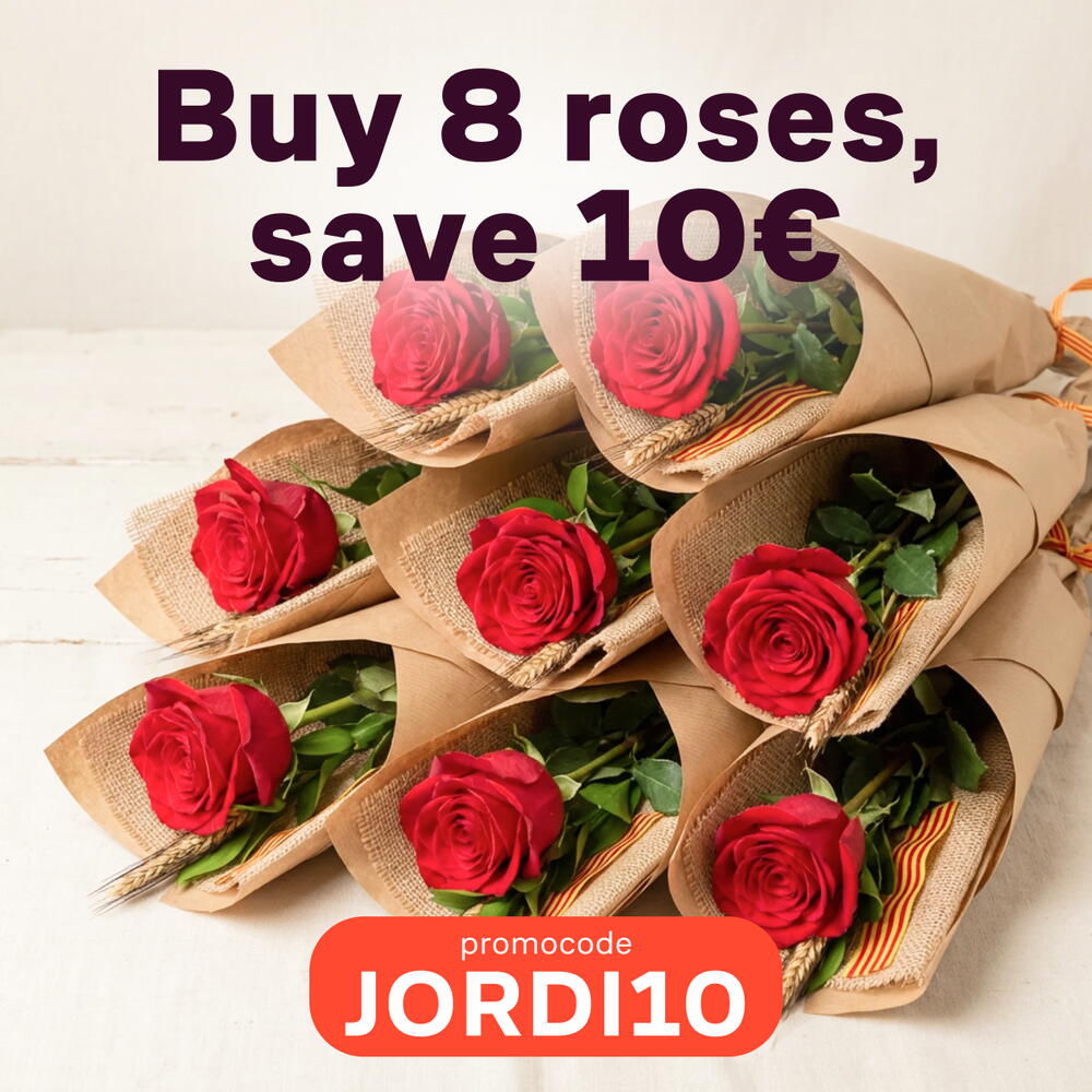 Celebra Sant Jordi con un formato pensado para regalar más de una sonrisa. Este pack incluye varias rosas frescas, cada una presentada en su propia envoltura elegante, listas para ser entregadas por separado. Es la opción perfecta para quienes quieren felicitar a varias personas en un mismo día: una rosa para mamá, otra para una amiga, otra para una compañera… Un solo pedido — múltiples detalles llenos de significado. Las rosas se preparan cuidadosamente con verdes decorativos y un packaging ligero y delicado, manteniendo la estética tradicional de Sant Jordi con un toque moderno. Un producto práctico para regalar, compartir y emocionar. Recomendaciones de cuidado: Coloca cada rosa en agua limpia lo antes posible. Cambia el agua cada 1–2 días y corta ligeramente el tallo en diagonal para prolongar su frescura.