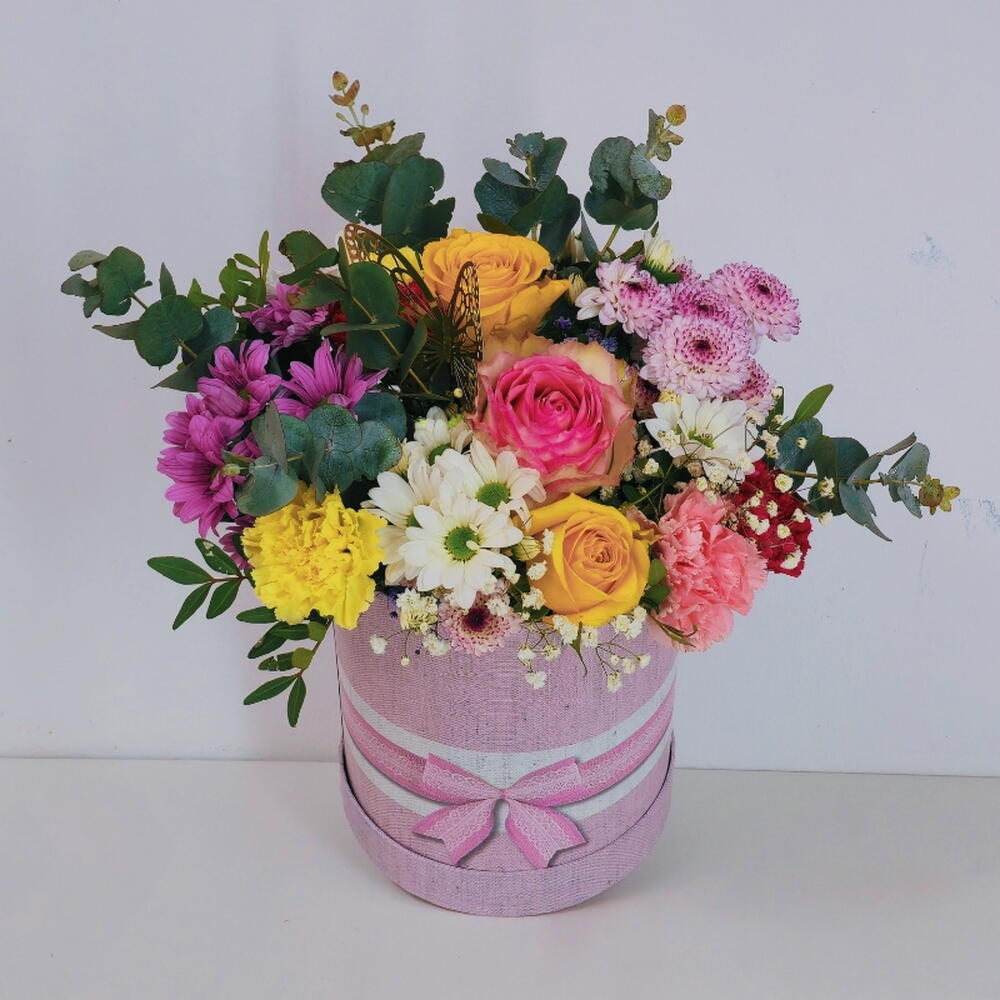 Preciosa caja que aporta alegría con sus colores vibrantes, ideal para el día de la madre, cumpleaños, san Valentín, día de la mujer, entre otras fechas y momentos especiales.