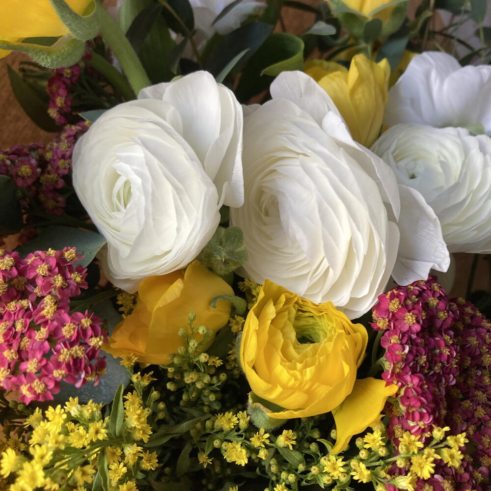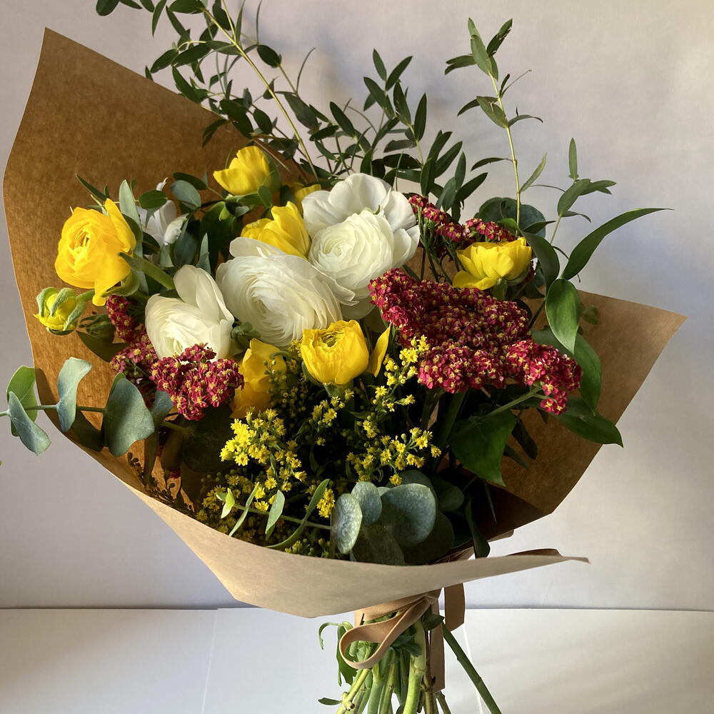 Solidago - 1 ud. verdes variados - 5 ud. complementos - 3 ud. ranunculo - 10 ud.