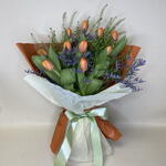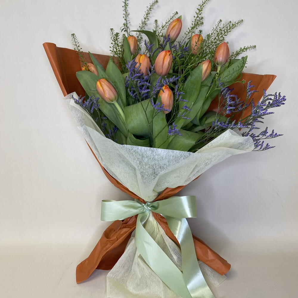 Limonium - 3 ud. tulipanes - 10 ud. eucalipto - 5 ud.