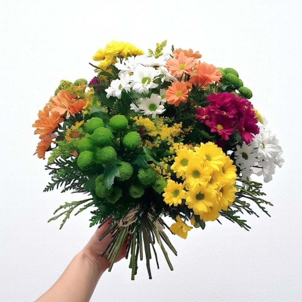 Descubre la belleza clásica de nuestro magnífico Ramos clásicos, compuesto por 12 margaritas de colores variados que brindan una explosión de júbilo y frescura. Este ramo se adorna con 3 unidades de delicada paniculata y 1 unidad de verdes variados que realzan su belleza natural y añaden un toque de elegancia. Ideal para alegrar cualquier espacio o para regalar en una ocasión especial.