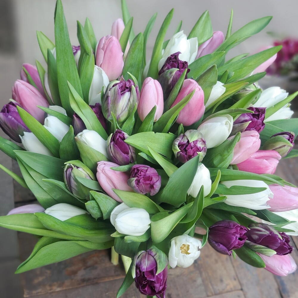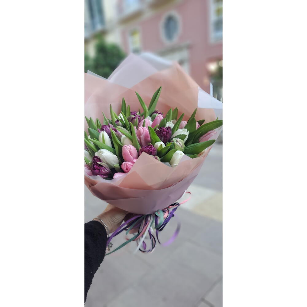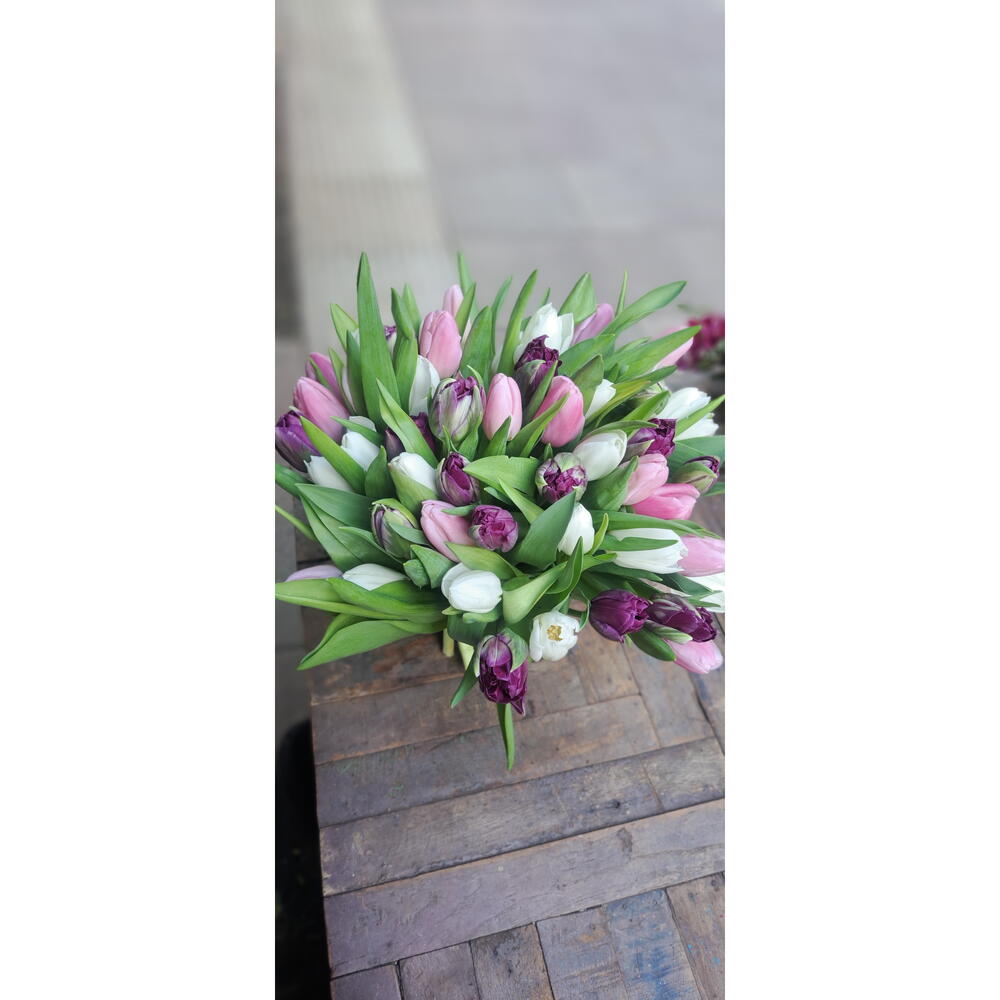 Mix de tulipanes de tonos rosados, blancos y morados 💟 Tonalidad se puede variar depende de disponibilidad 💡