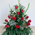 Este delicado arreglo floral de nuestra Floristería funeraria se compone de 12 hermosas rosas rojas que simbolizan el amor y el respeto. Además, cuenta con 3 gladiolos blancos que reflejan la sinceridad y la integridad. En el arreglo también introducimos 3 ud. del ligero y estético gypsophila blanco que aporta una sensación de calma y paz. Las 6 hojas de palma y las 4 ud. de verdes variados agregan belleza y textura a la composición, creando un diseño impresionante que transmite profundos sentimientos de cariño y consuelo. Este arreglo floral es perfecto para expresar sus condolencias y transmitir su apoyo en un momento tan difícil.