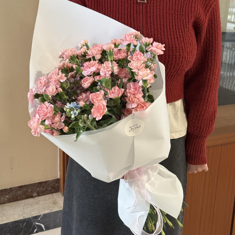 Blooming lake es una hermosa composición de mini claveles de color rosa y oxypetalum azul. Regalo perfecto para ella, para una primera cita, para expresar tus sentimientos, para madres y recién nacidos y simplemente porque sí .😏