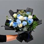 Este exquisito arreglo floral de autor consta de tres encantadoras rosas azules, cinco rosas blancas, siete claveles delicados y ocho tipos de vegetación variada. Un verdadero lujo visual que aportará un toque de elegancia y estilo a cualquier espacio. Ideal para obsequiar en ocasiones especiales o simplemente para adornar tu hogar con belleza natural.