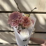 Statice - 3 ud. El crisantemo - 3 ud. rose - 1 ud. carnation - 5 ud. rama de cerezo en flor - 2 ud.