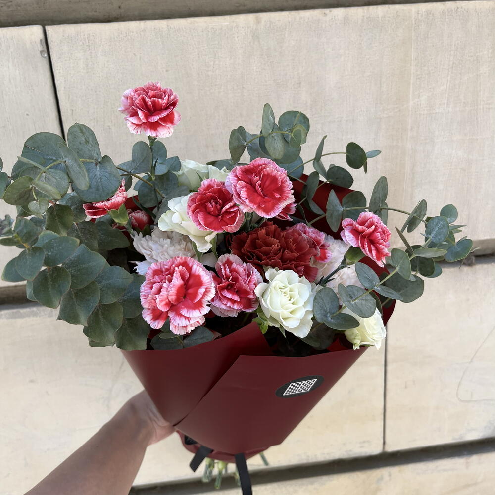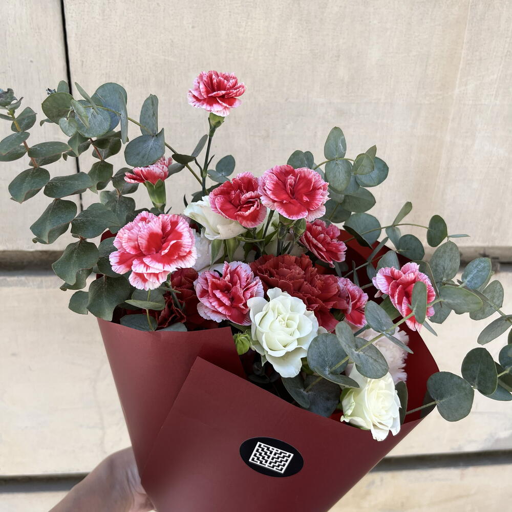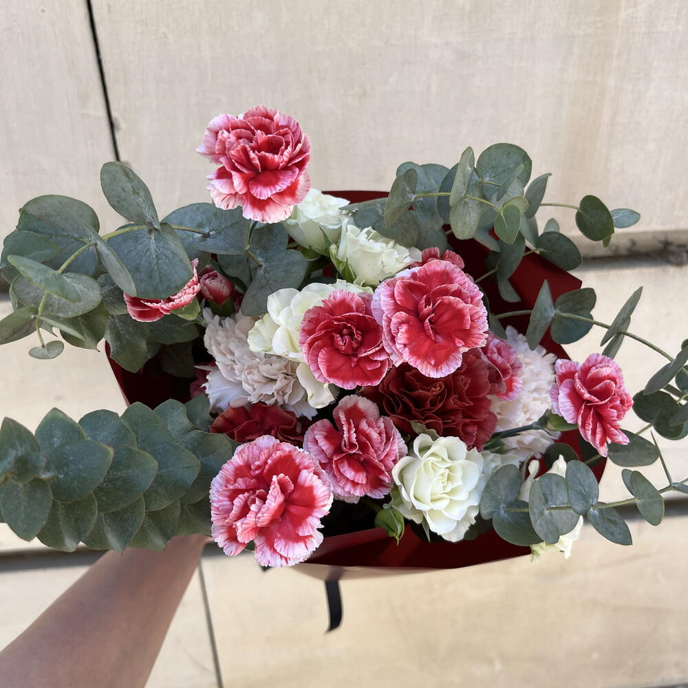 Mini rose - 2 ud. carnation - 8 ud. eucalipto - 6 ud.