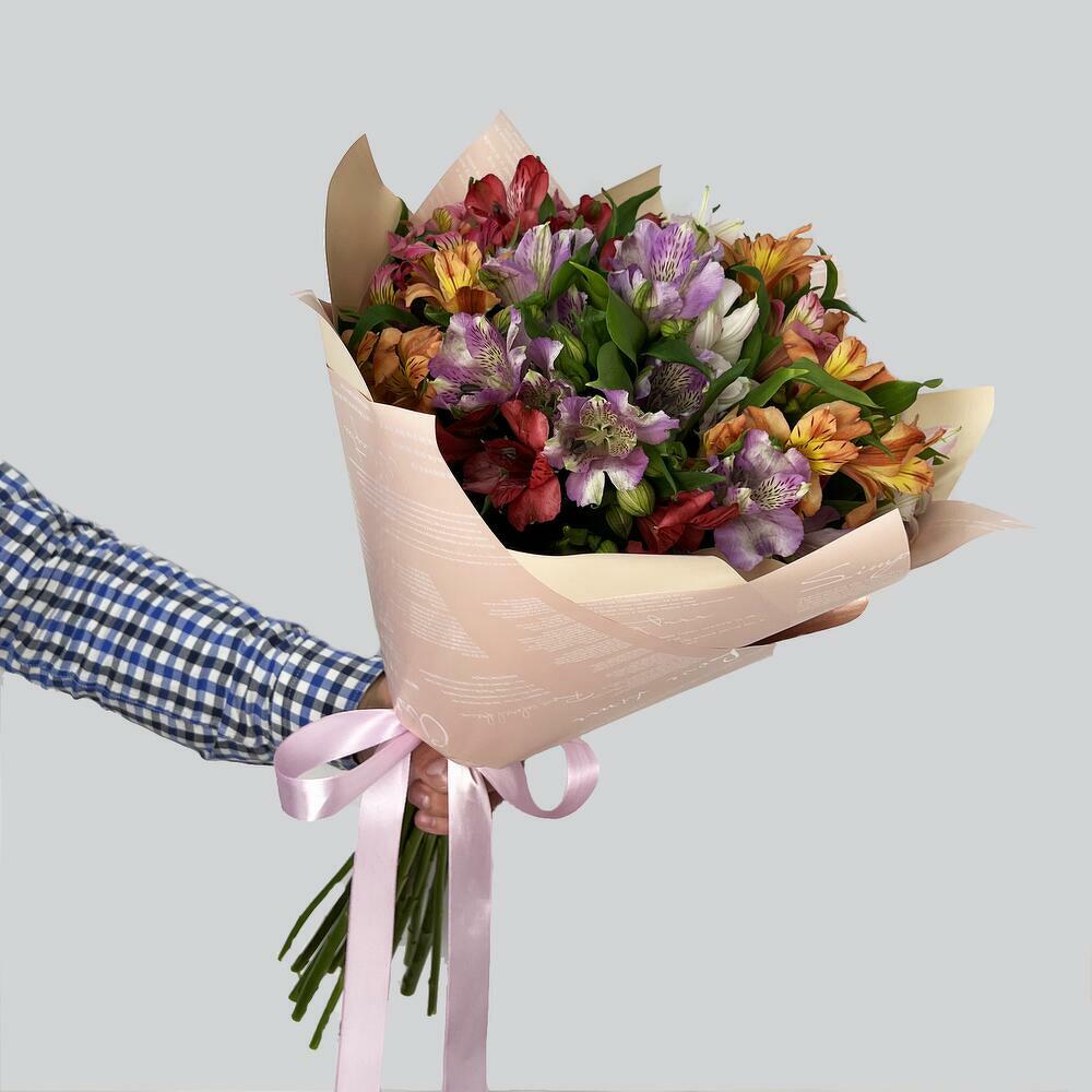 Satin ribbon - 1 ud. designer wrapping - 2 ud. mixed alstroemerias (europe) - 16 ud.