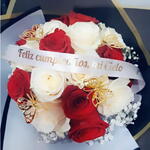 paniculata - 1 ud. rosas rojas - 10 ud. rosas blancas - 10 ud. mariposas de decoración - 4 ud. cinta con texto personalizado - 1 ud.