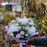 Alstroemeria - 7 ud. hortensia - 3 ud. rosa ecuador - 8 ud. craft paper - 2 ud. eucalipto - 5 ud. rosa jardín - 7 ud.