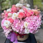 hydrangea mix - 7 ud. rosal - 5 ud. alice lisianthus - 9 ud. eucalipto - 5 ud.