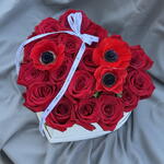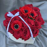 box heart - 1 ud. ribbon satin - 1 ud. anémonas - 3 ud. rosa freedom - 17 ud.