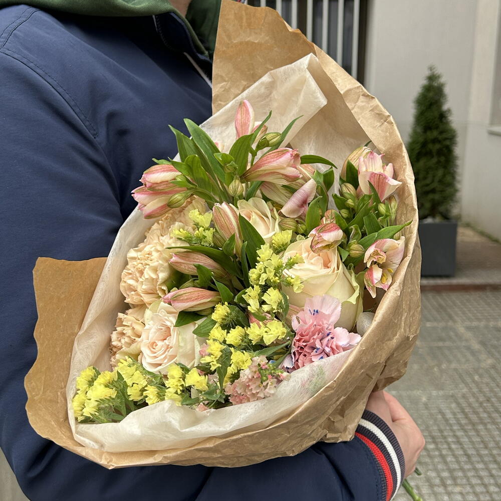 Statice - 2 ud. Alstroemeria - 4 ud. claveles - 4 ud. rosa rosa - 3 ud.