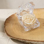Cabeza de rosa preservada en tonalidad blanca