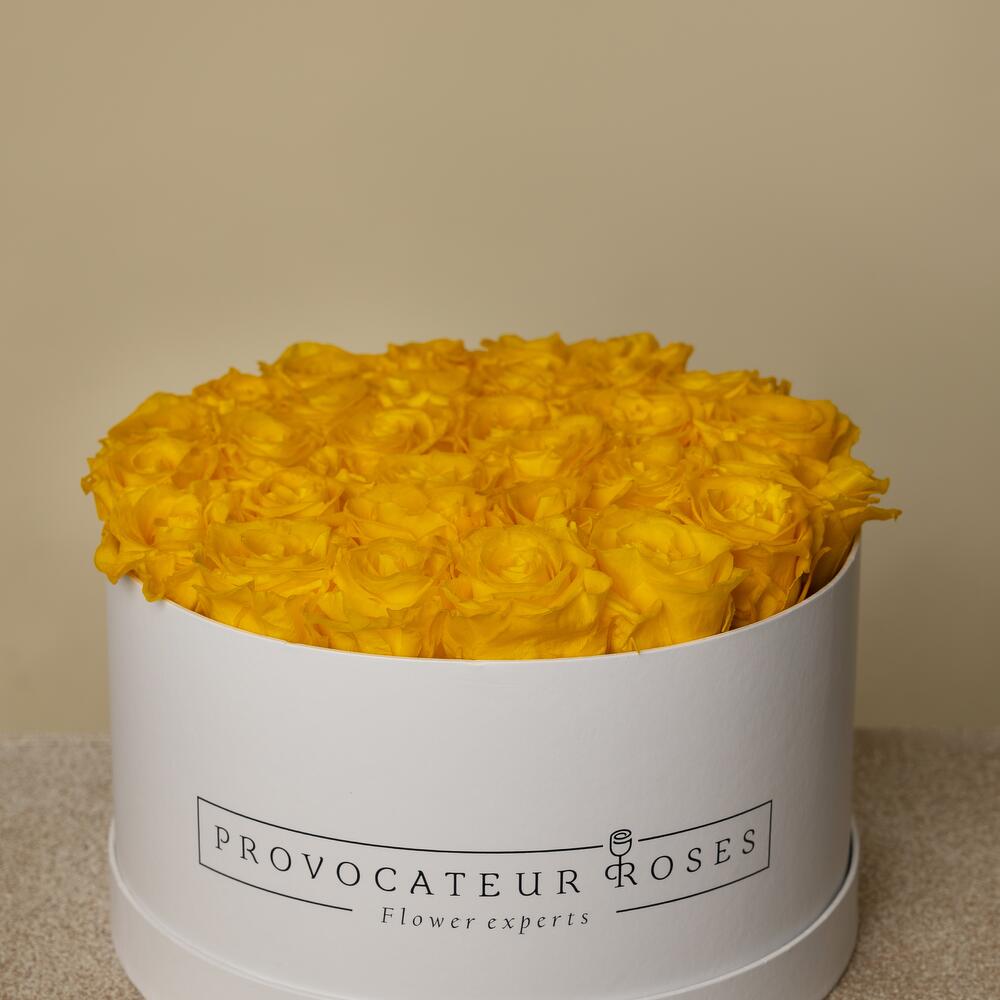 Caja 30cm rosas preservadas amarillo