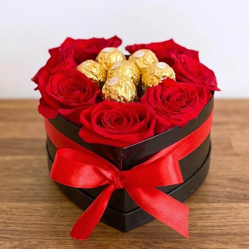 Ferrero rocher - 6 ud. rosas rojas - 7 ud. caja decorativa - 1 ud.